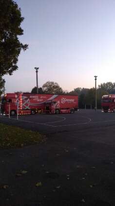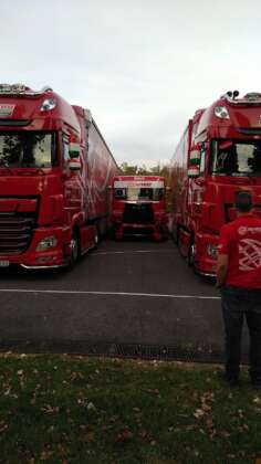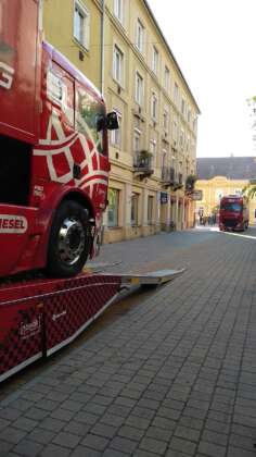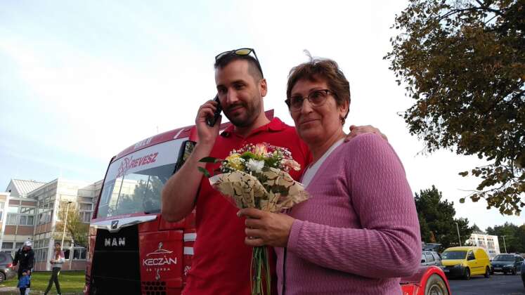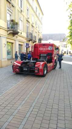A szerda reggel azonban először a gyerekeknek szólt. A kisiskolások különösen örülhettek, hiszen elmaradt kvázi az első óra. Az oladi iskola focipályáján ott volt Balu, Norbi és a csapat egy része, ez sokkal izgalmasabb program volt. Azonnal birtokba is vették a versenykamiont, illetve a nagyobb szállító testvéreket. Olykor indokolatlanul megszólalt a duda is. Gyors búcsú után elindult a menet egy helyi tulajdonú Ferrari felvezetésével a Fő tér mellé.