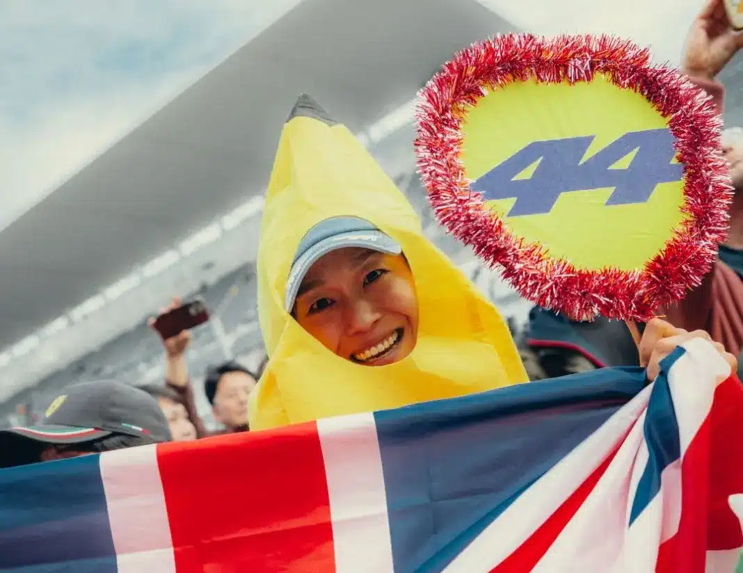 A Ferrari pilótái a Japán Nagydíj előtt a rendkívüli elhivatottságukról ismert helyi szurkolók által nekik küldött videókat pörgették át, amikor Hamiltonnak megakadt a szeme az egyiken, amelyen két banánjelmezbe öltözött rajongó üzent Leclerc-nek.