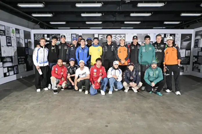 És Vettel így is tett, az interlagosi pályára belépve külön rajzolós eseményt szervezett a rajongóknak, de körbejárta a csapatok motorhome-jait is, hogy ugyanerre kérje a versenyzőket – itt van a Ferrari, a Mercedes, a Haas és a Racing Bulls posztja erről, de Vettel még korábbi Red Bull-os csapattársát és riválisát, Mark Webbert is befűzte. A német is kapott egy saját garázst a pályán, amit kiállítóteremmé alakítottak, s kidíszítették a hétvége során elkészült fás rajzokkal. Vettellel együtt még egy csoportképre is összeállt a mezőny, amiben a német igazi szervezőként, nagy gonddal rendezgette el mindenkinek a pozícióját.