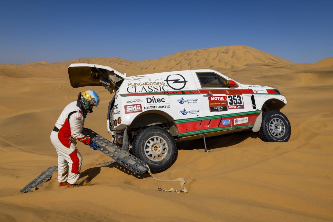 Az Opel Dakar Team szervizcsapata hétfőn hajnali ötkor tért aludni, de megérte a sok munka, mert a Szalay Balázs, Bunkoczi László kettős tökéletes állapotban lévő versenyautóval állhatott oda hétfői rajthoz. Erre szükség is volt, hiszen 457 kilométer várt a mezőnyre, ráadásul változatos talajon: volt itt süppedős, vendégmarasztaló homok, dűnék, ameddig a szem ellát, és persze gyorsabb, valamint technikásabb kemény talaj is.