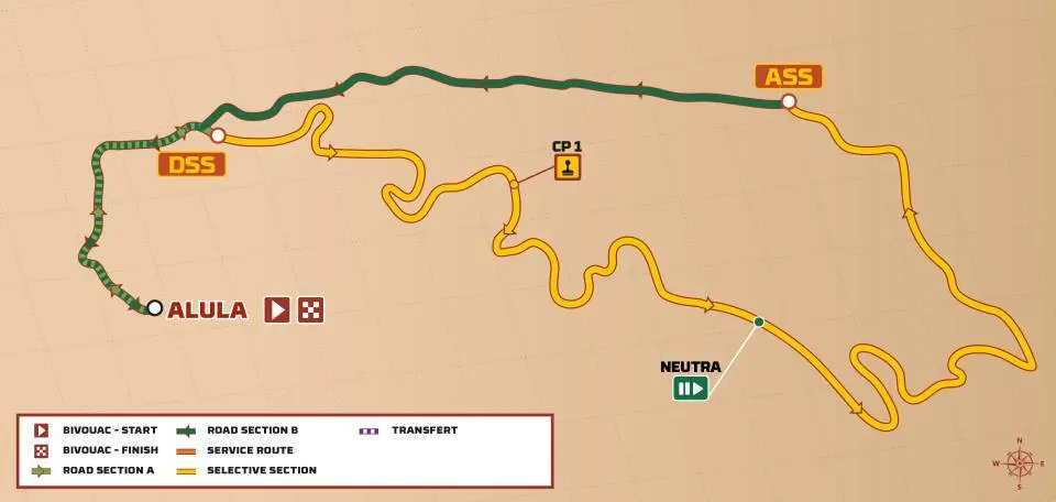 A Dakar harmadik szakaszán Alula környékén 422 km mért és 314 km összekötő szakasz vár a versenyzőkre.